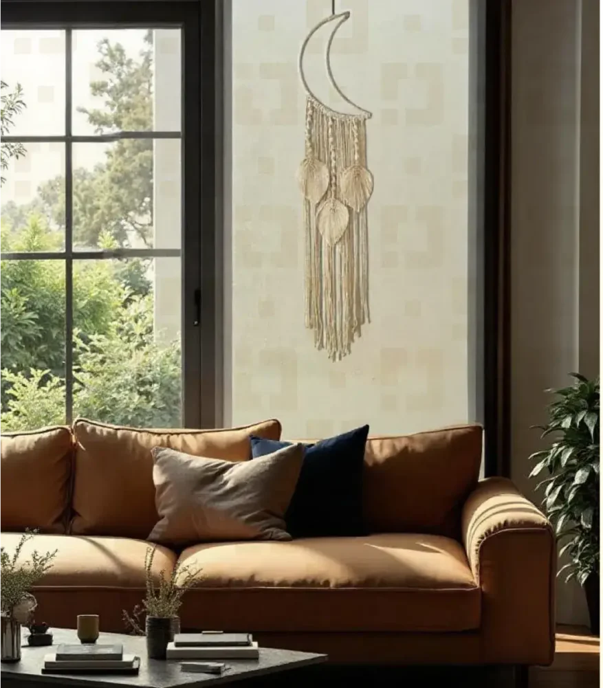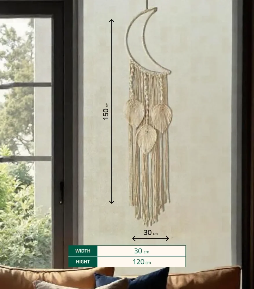مكرمية رمضان صناعة يدوية من خامات الطبيعة، هلال مكرمية بيج من الألياف والمعادن، 150*30 سم، صنع بواسطة Decoro، يناسب النمط الريفي، مستوحى من التصميم الانيق لمحبي المشغولات اليدوية، باستخدام مواد عالية الجودة، تضيف لمسة من الأناقة و الجمال إلى أى مساحة.