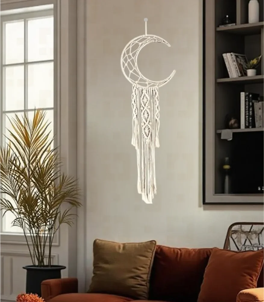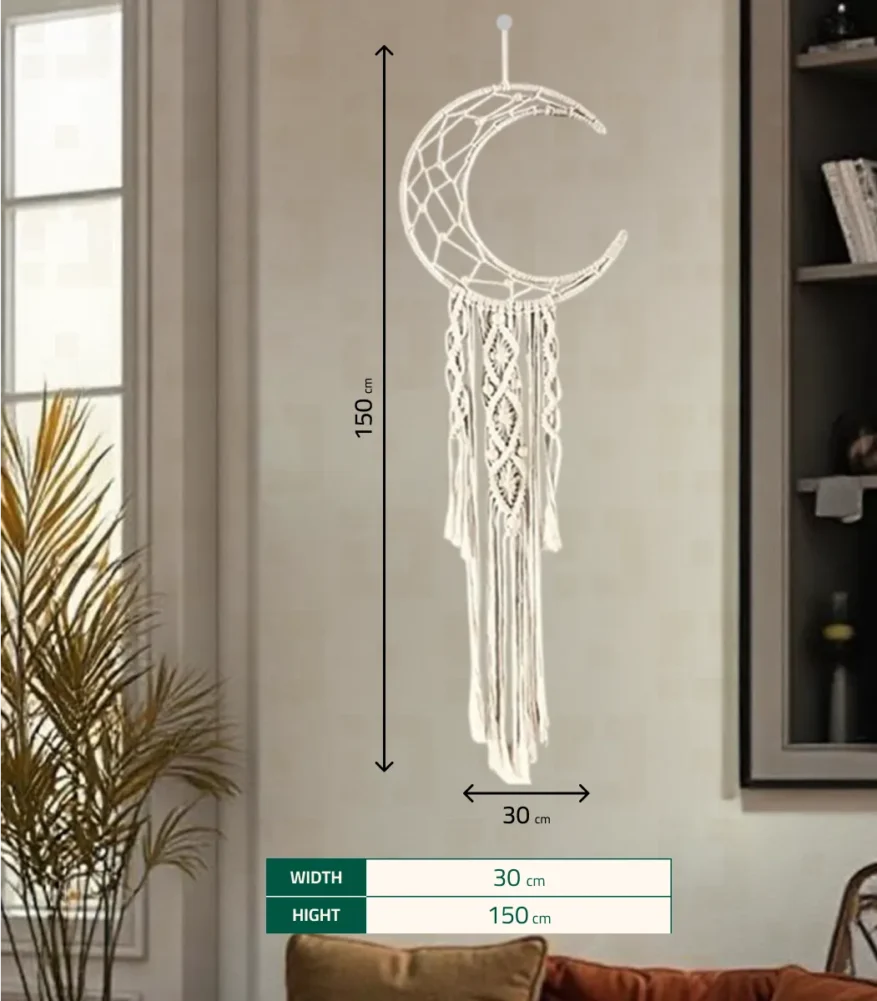 مكرمية رمضان صناعة يدوية من خامات الطبيعة، هلال مكرمية بيج من الألياف والمعادن، 120*30 سم، صنع بواسطة Decoro، يناسب النمط البوهيمي، مستوحى من التصميم الانيق لمحبي المشغولات اليدوية، باستخدام مواد عالية الجودة، تضيف لمسة من الأناقة و الجمال إلى أى مساحة.