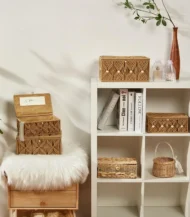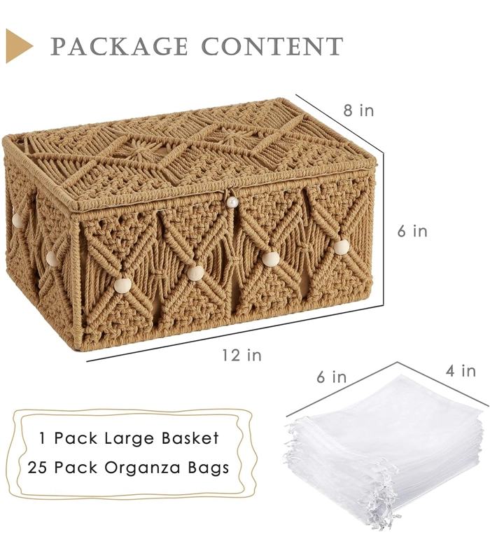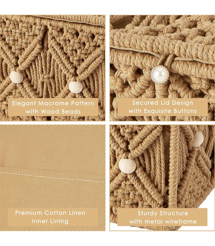 أنتيكيانو بتخلي الجمال يعيش في كل تفاصيل 2 قطع من سلة تخزين مكرمية المصنوع بعناية. تفاصيله الدقيقة من الألياف والخشب بتعكس فن اليد والإتقان الحقيقي. تخلي أي مساحة تنبض بالحياة والهدوء.