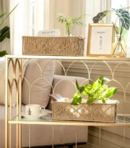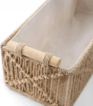 أنتيكيانو بتخلي الجمال يعيش في كل تفاصيل 2 قطع من سلة تخزين مكرمية المصنوع بعناية. تفاصيله الدقيقة من الألياف والخشب بتعكس فن اليد والإتقان الحقيقي. تخلي أي مساحة تنبض بالحياة والهدوء.