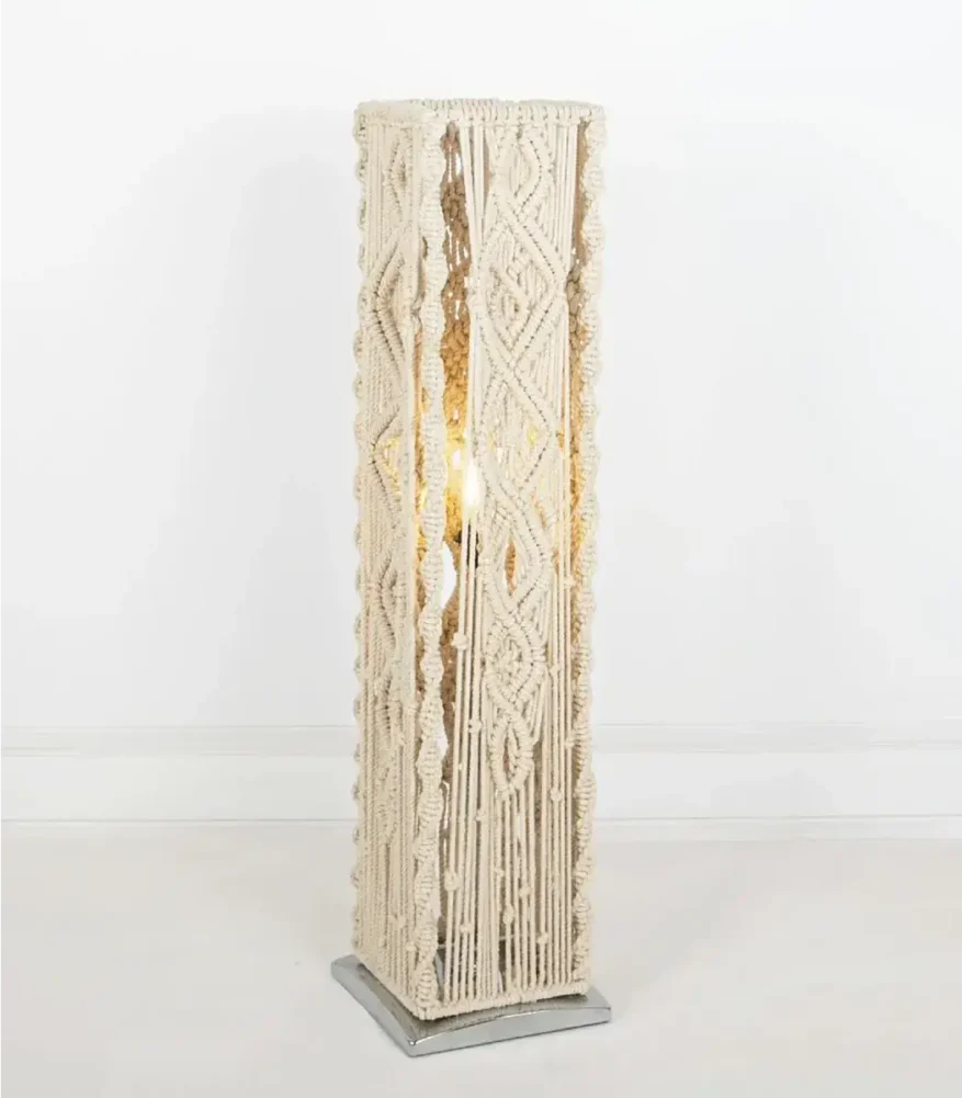 جدد أجواء بيتك مع Boho Makrami Floor Lamp العصري من الشيخ سعد. مصنوع يدويًا من الألياف والمعادن، بتصميم حديث أنيق ولون بيج جذاب وبمقاس 120 سم. يجمع بين البساطة والفخامة ليمنح منزلك لمسة من السحر والجمال.