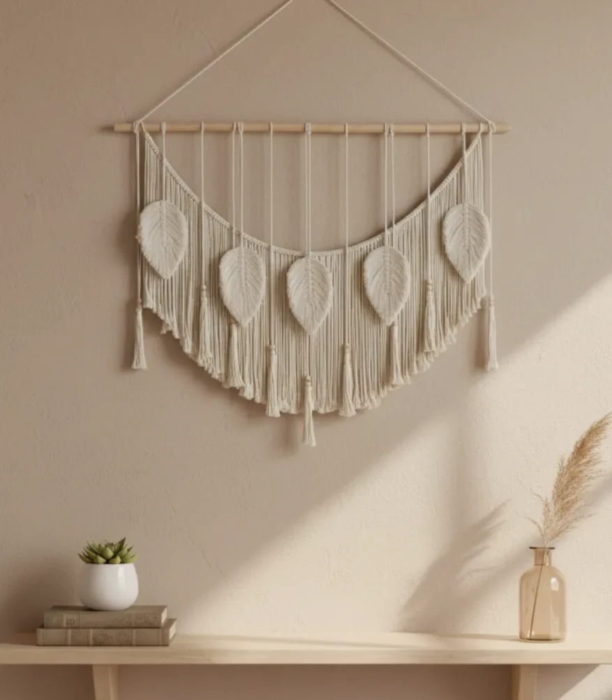 أنتيكيانو بتقدملك مزيج فريد بين الأصالة والعصرية في أوراق شجر مكرمية. بتصميم بوهيمي مميز وخامة الألياف والخشب تضيف لمسة من البساطة والفخامة. لكل من يحب التفاصيل، هذه القطعة تحكي قصة من الجمال والدفء.