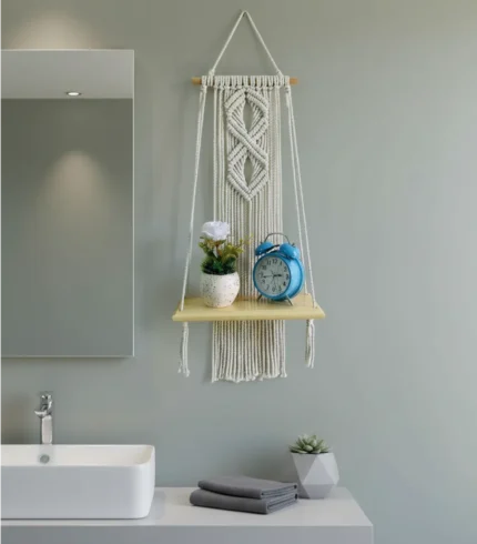 Add a touch of personality to your wall with this handmade 2 Macrame Shelf from the Home Accessories brand. Made of high-quality Fiber, Wood in a stylish Bohemian design, its elegant Off white finish suits a variety of interiors. Perfect for living rooms, bedrooms, or entryways, this piece brings artisanal charm and natural beauty to any space. Fits beautifully in areas measuring 50×30 cm.