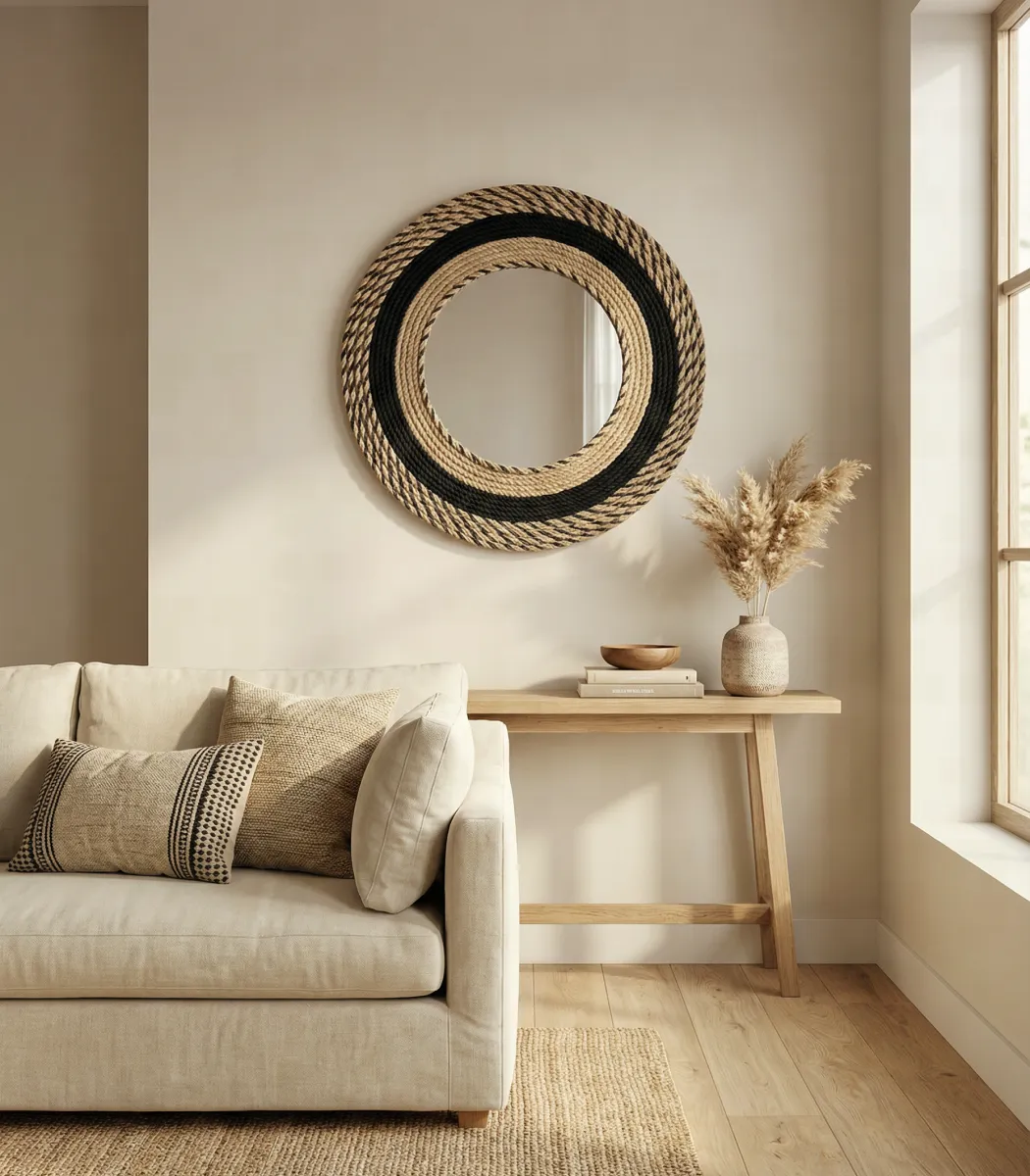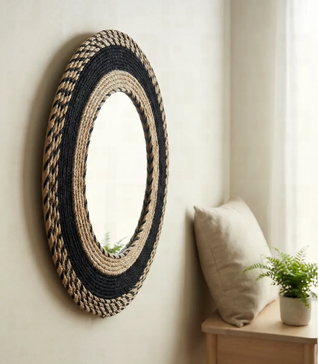 To look into the HANDS Macramé Mirror is to see yourself held by craft. A hand-knotted fiber frame in a rich multicolor weave that makes the mirror itself an artwork — intricate, warm, and deeply intentional. A piece that belongs in the room you love most.