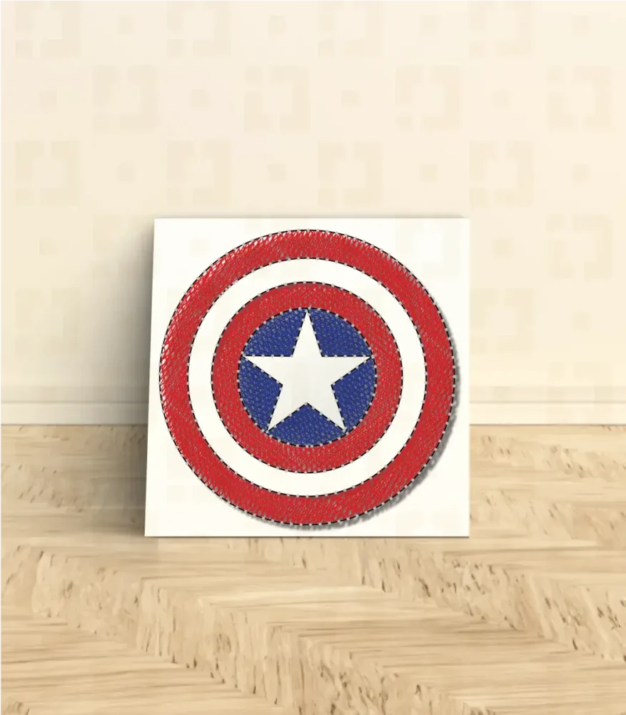 String art cartoon super heroes, Super heroesLogosCollection, Contemporary art handmade, Captain America Logo Inspired string art wall decor created by Marvel Entertainment using very high quality materials, Available in blue, White and yellow.