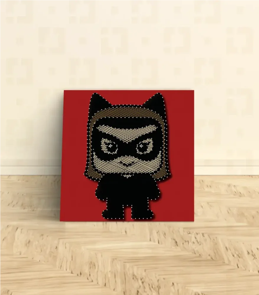 String art cartoon super heroes, Lego style characters collection, Contemporary art handmade, Catwomen lego Inspired string art wall decor created by Warner Bros using very high quality materials, Available in White, blue and red.