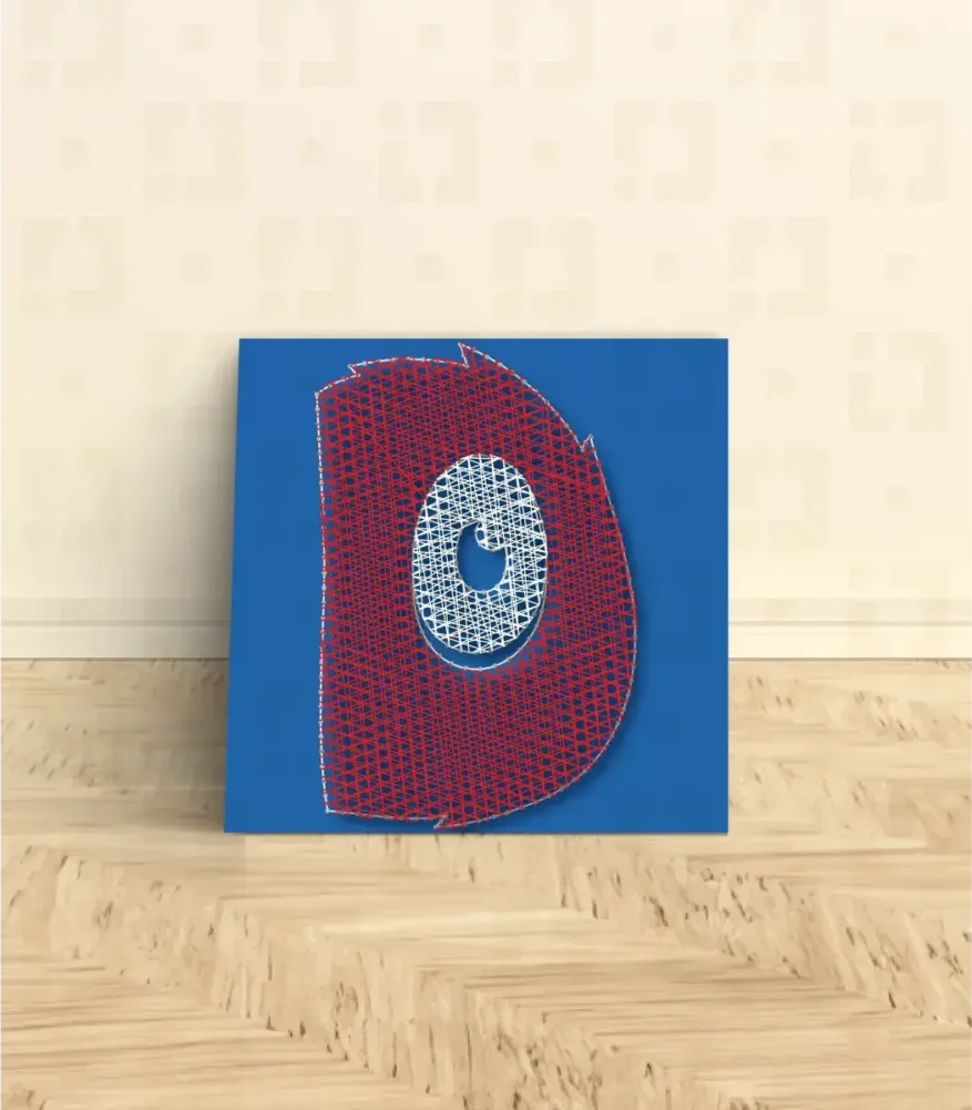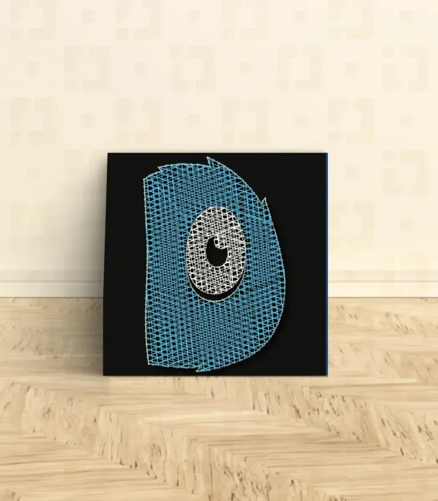 String art typography characters, Contemporary art handmade, D Character Inspired string art wall decor using very high quality materials, Available in red, blue and black.