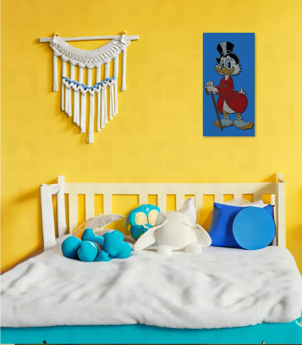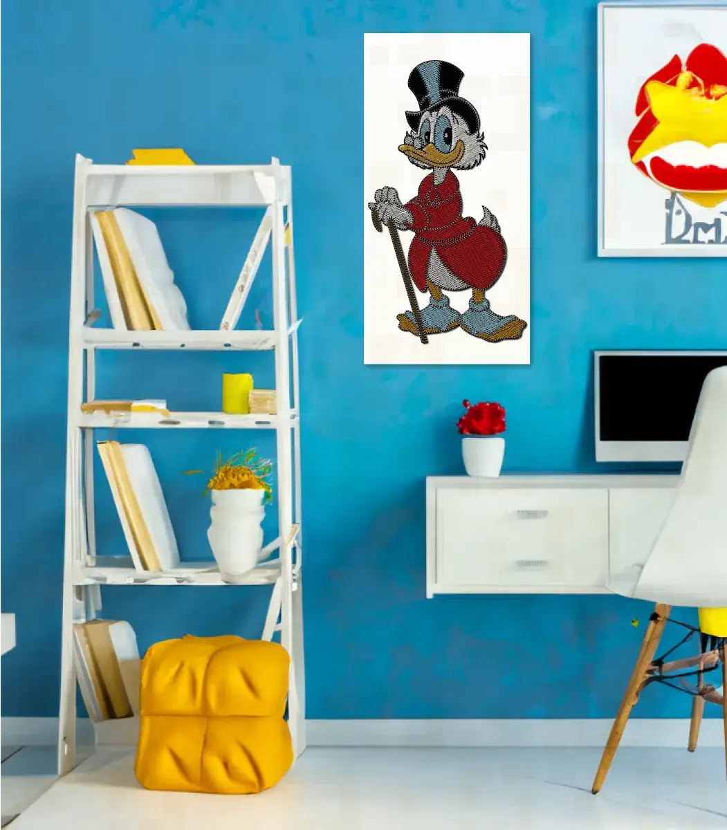 String art cartoon famous character, Donald duck collection, Contemporary art handmade, Dagobert Duck Inspired string art wall decor created by Walt Disney Productions using very high quality materials, Available in gray, White and blue.