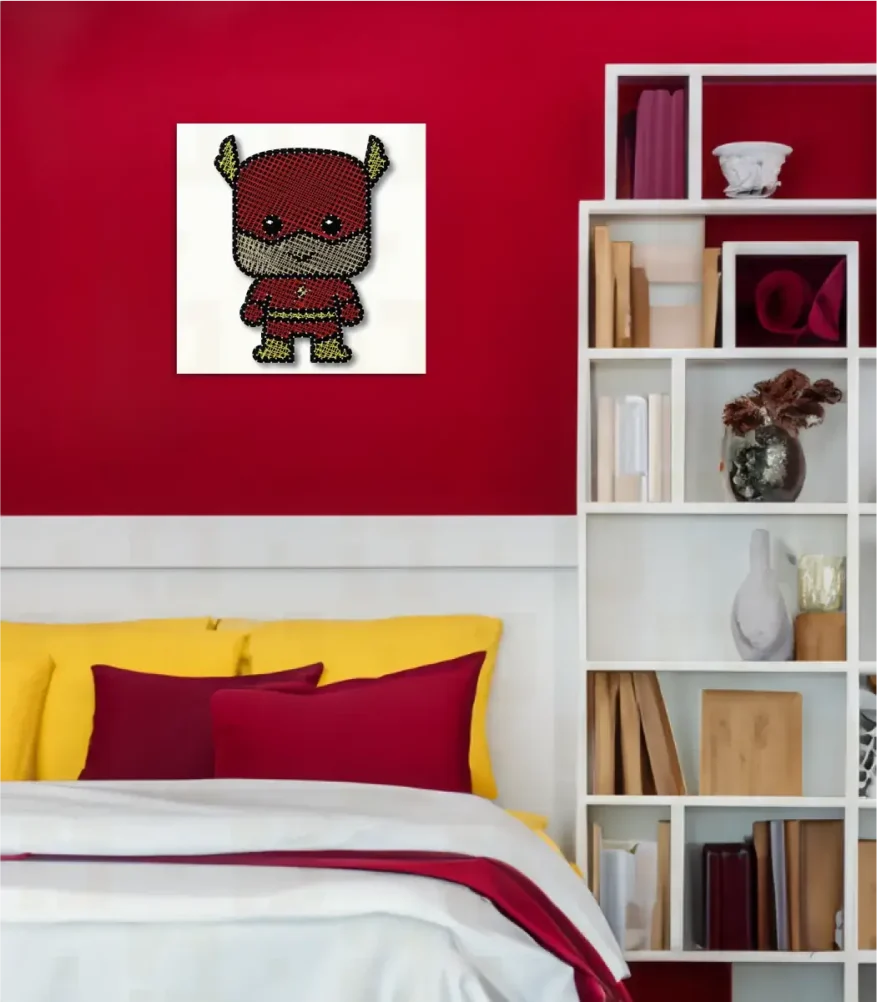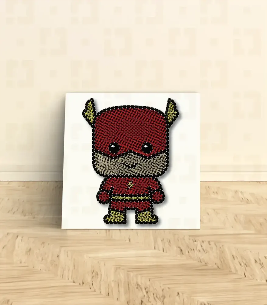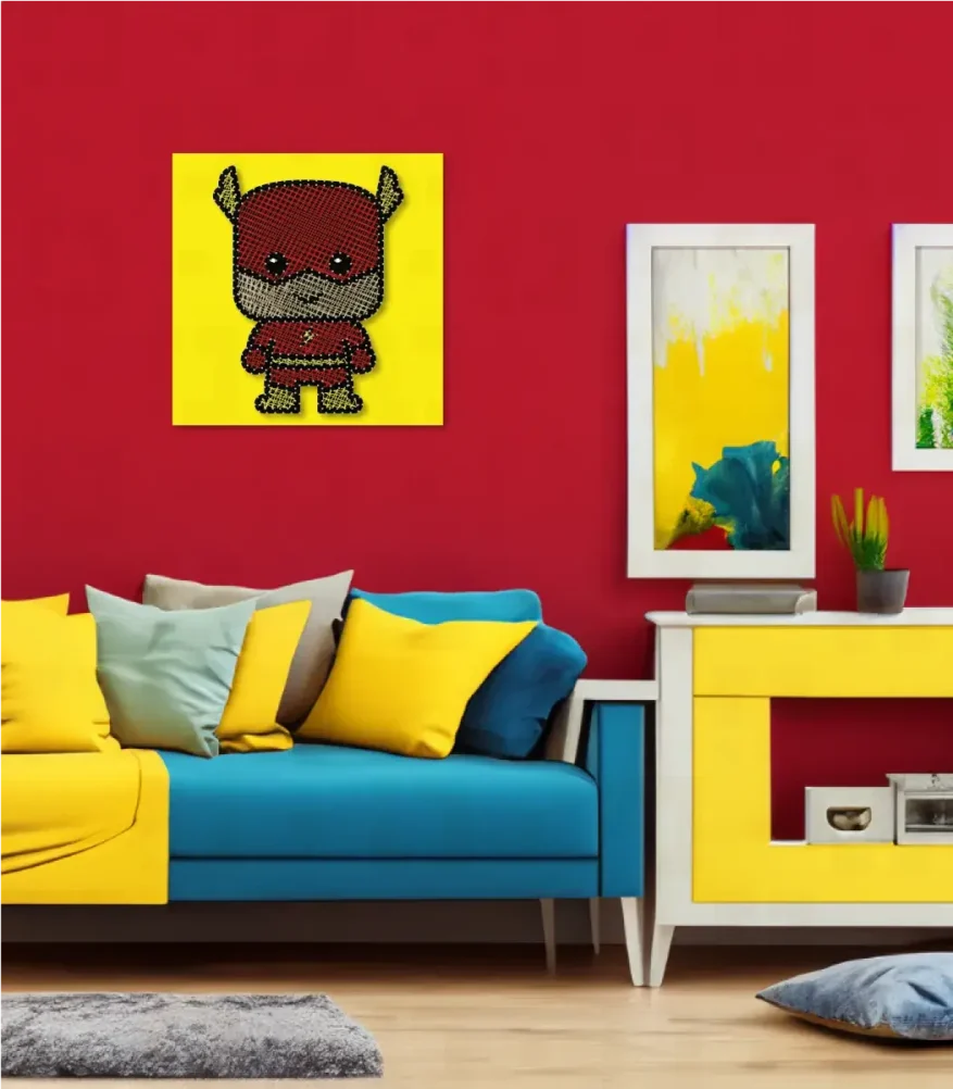 String art cartoon super heroes, Lego style characters collection, Contemporary art handmade, Flash Lego Inspired string art wall decor created by Marvel Entertainment using very high quality materials, Available in blue, yellow and White.