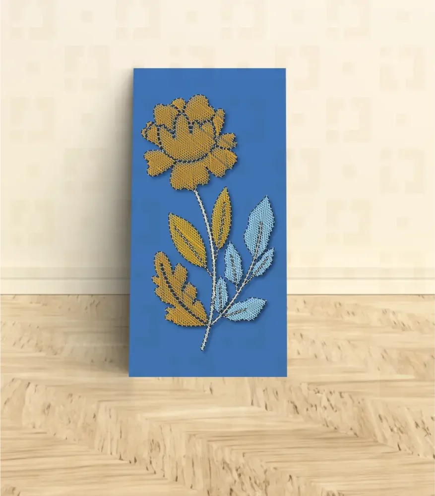 String art nature flowers, Contemporary art handmade, Fowler 1 Inspired string art wall decor using very high quality materials, Available in gray, yellow and blue.
