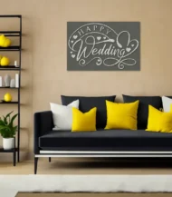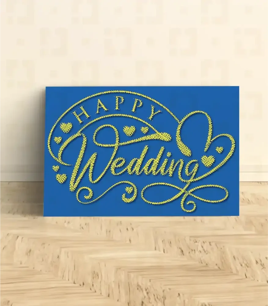 String art celebrations marriage, Contemporary art handmade, Happy Weeding sentence Inspired string art wall decor using very high quality materials, Available in red, blue and gray.