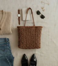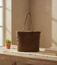 Elevate your boho look with the Brown Macrame bags from Jungle. Crafted in a bohemian style using premium fiber, this bag is perfect for relaxed yet chic outings. Comes in size 30*30*3 cm
