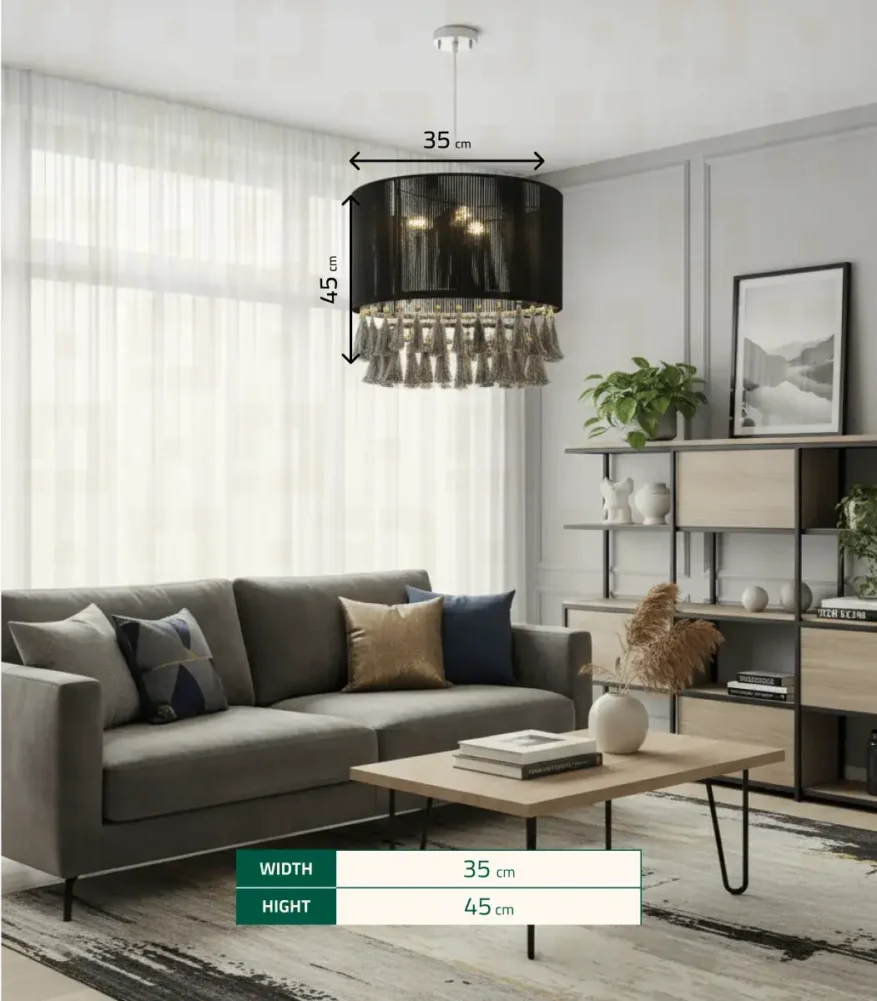 Add artistic charm to your interiors with the handcrafted Macrame Ceiling lamp by TBS. Made from Fiber, Metal with a Modern touch and finished in Black. Perfect for adding warmth, character, and timeless elegance to any room.