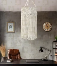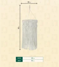 Discover the charm of our Macrame Chandelier by Antikiano brand. Crafted from high-quality Fiber, Metal, this Rustic, Modern, Bohemian, Minimalist style piece in elegant White adds a natural, cozy touch to your space. size 30×50 Cm.