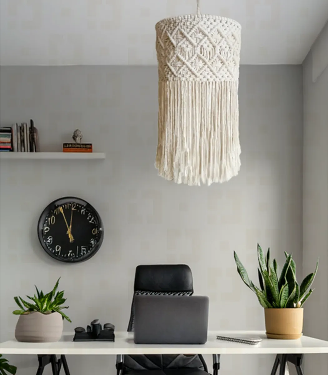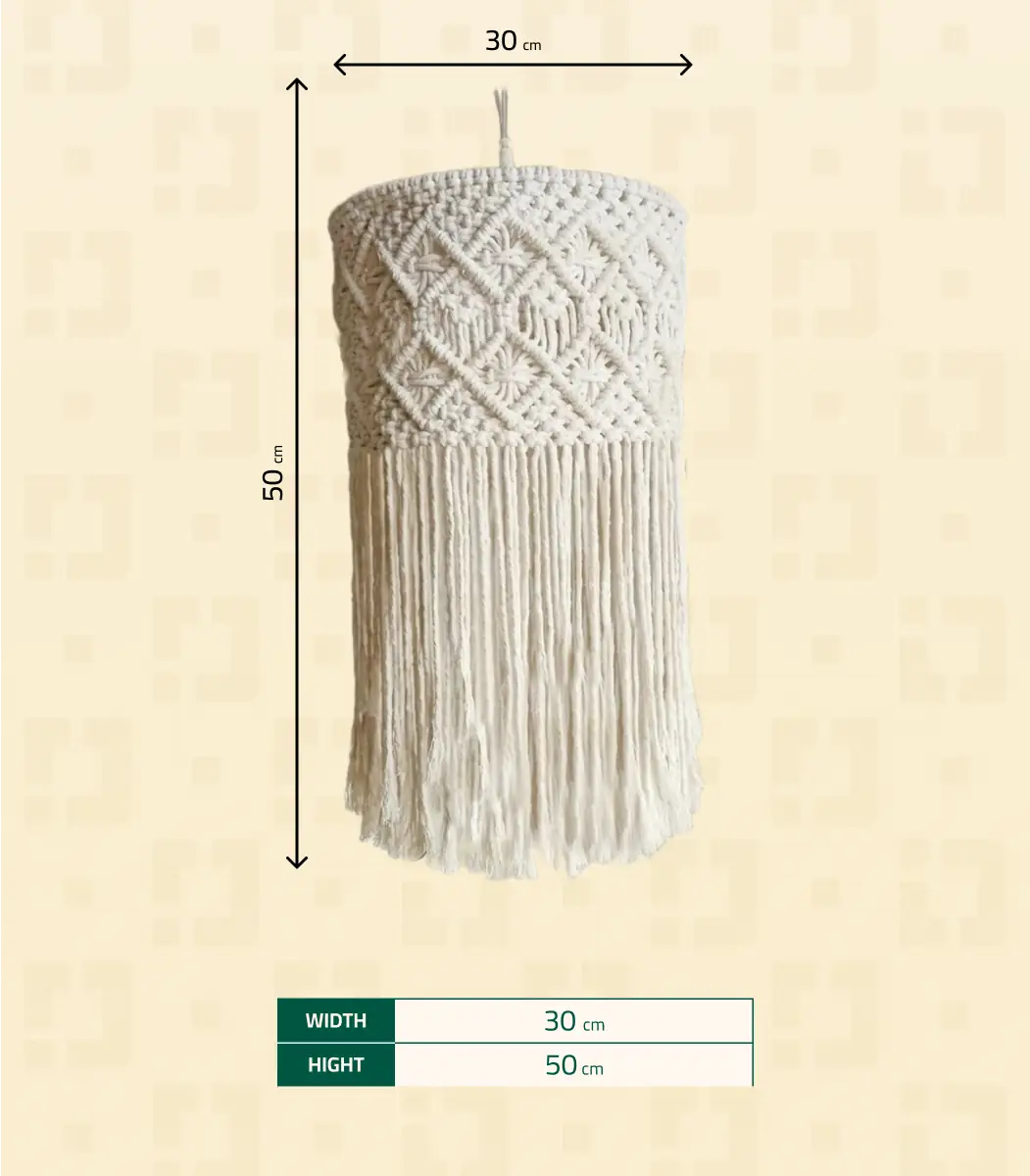 Discover the charm of our Macrame Chandelier by Antikiano brand. Crafted from high-quality Fiber, Metal, this Rustic, Modern, Bohemian, Minimalist style piece in elegant White adds a natural, cozy touch to your space. size 30×50 Cm.