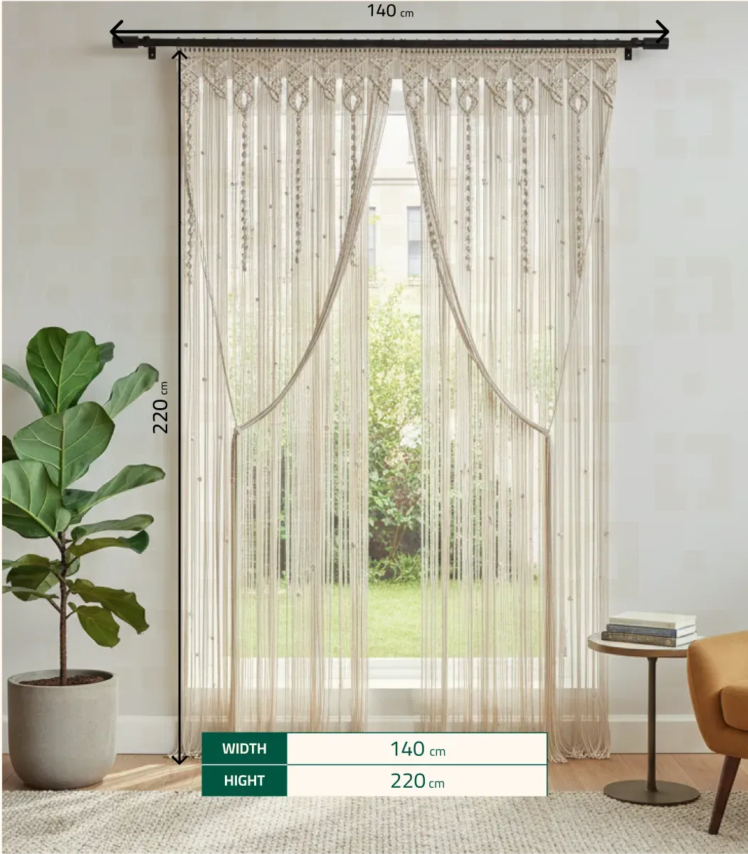 Add a refined touch to your space with this handcrafted Macrame Curtain. Expertly made from Fiber, in Off white, with dimensions 220*140 Cm. A unique décor piece that combines craftsmanship with beauty.