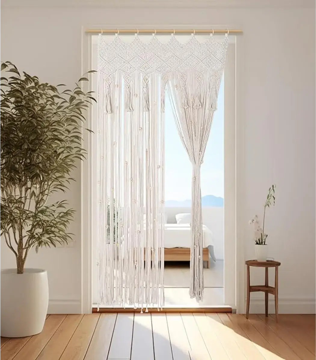 Transform the mood of your space with this elegant Macrame Curtain from Decoro brand. Thoughtfully crafted from premium Fiber, Wood, its Bohemian and Off white tone bring softness and depth to any window. Whether you’re framing natural light or adding privacy, it’s the perfect finishing touch. Designed to suit spaces measuring 100×220 Cm.