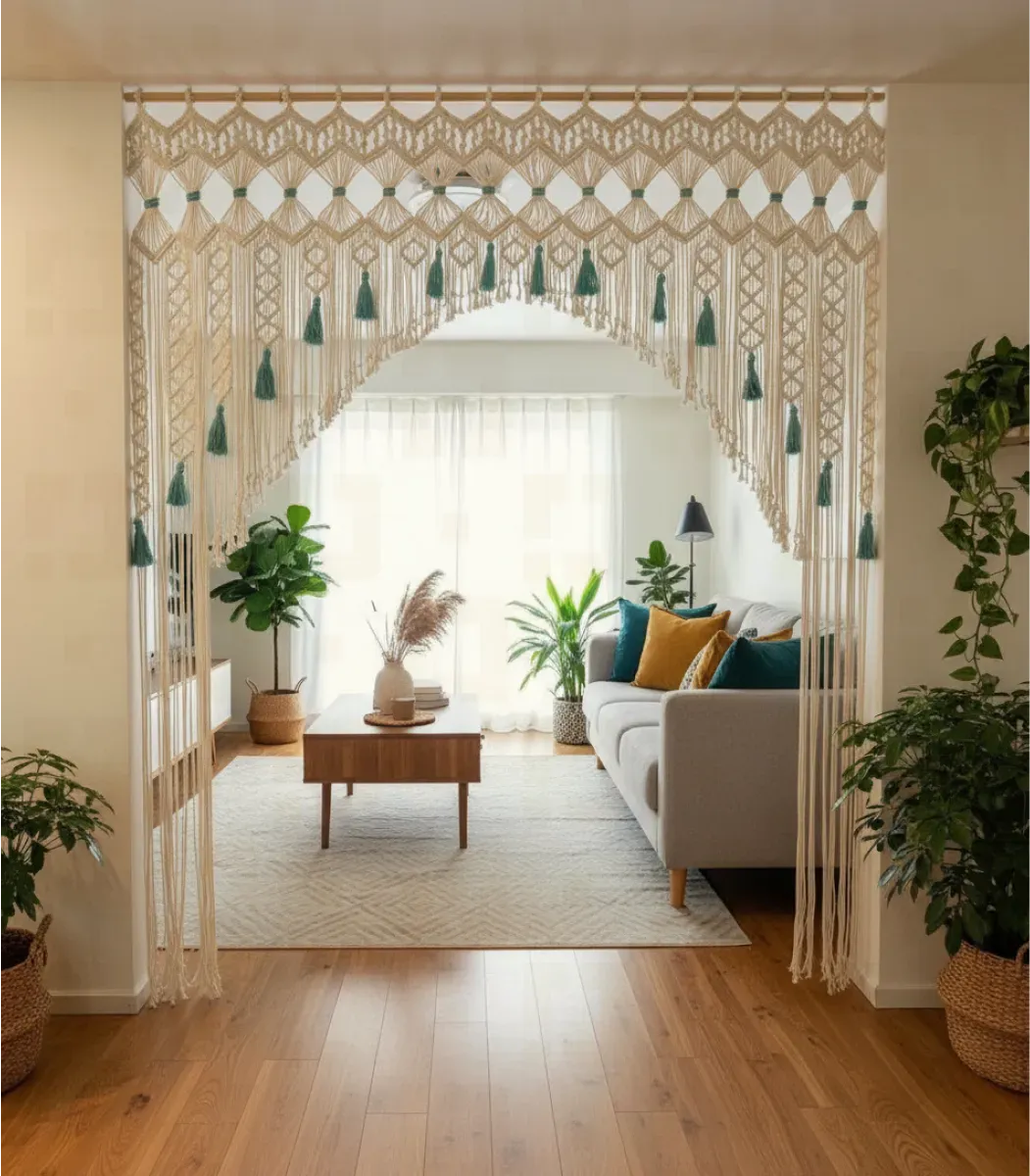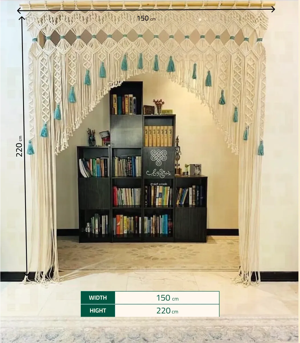 Elevate your interiors with the Macrame Curtain in Bohemian style. Handcrafted from Fiber, finished in Off white, size 220*150 Cm, by Zigara. A timeless piece to add warmth and charm to your home.