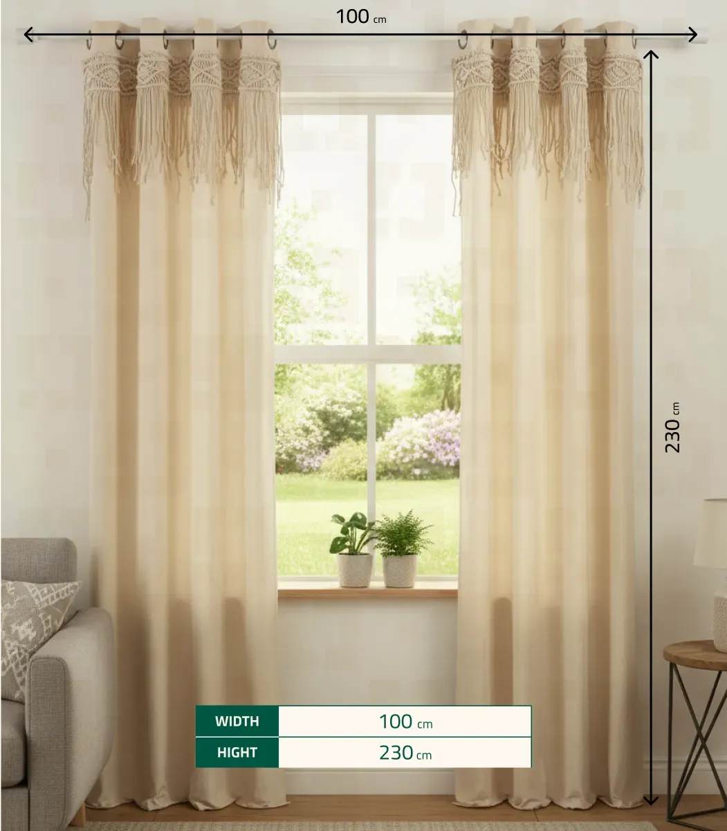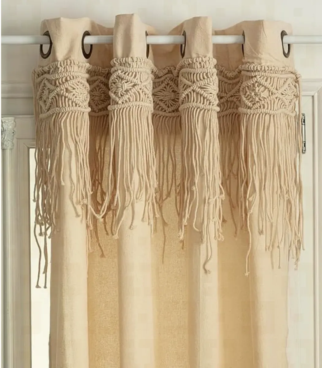 Elevate your interiors with the Macrame Curtain in Bohemian style. Handcrafted from Fiber, finished in Off white, size 50*100 Cm, by SHababik. A timeless piece to add warmth and charm to your home.