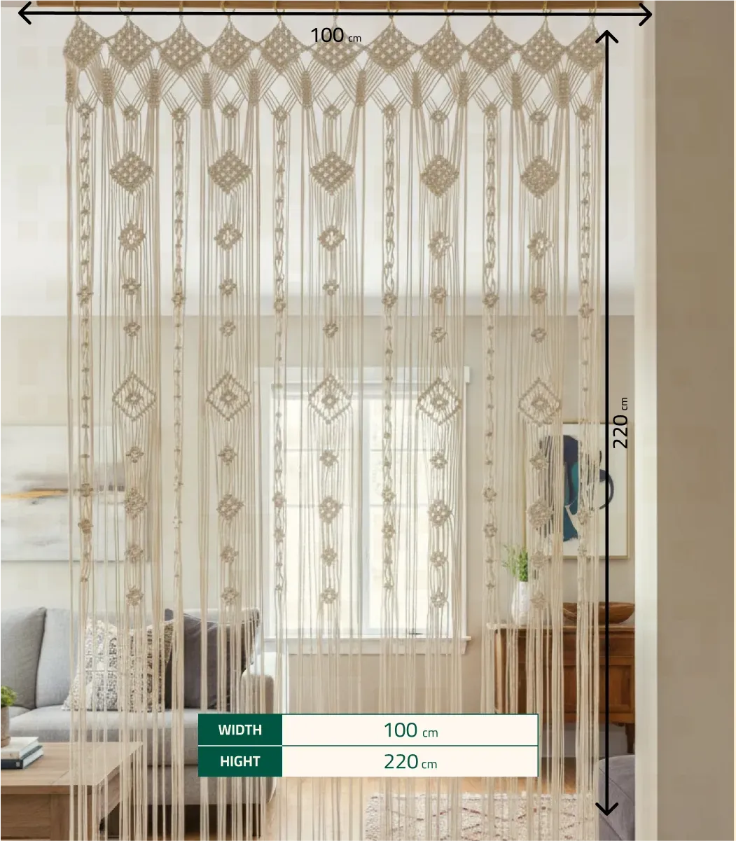 Elevate your interiors with the Macrame Curtain in Bohemian style. Handcrafted from Fiber, finished in Off white, size 220*100 Cm, by SHababik. A timeless piece to add warmth and charm to your home.