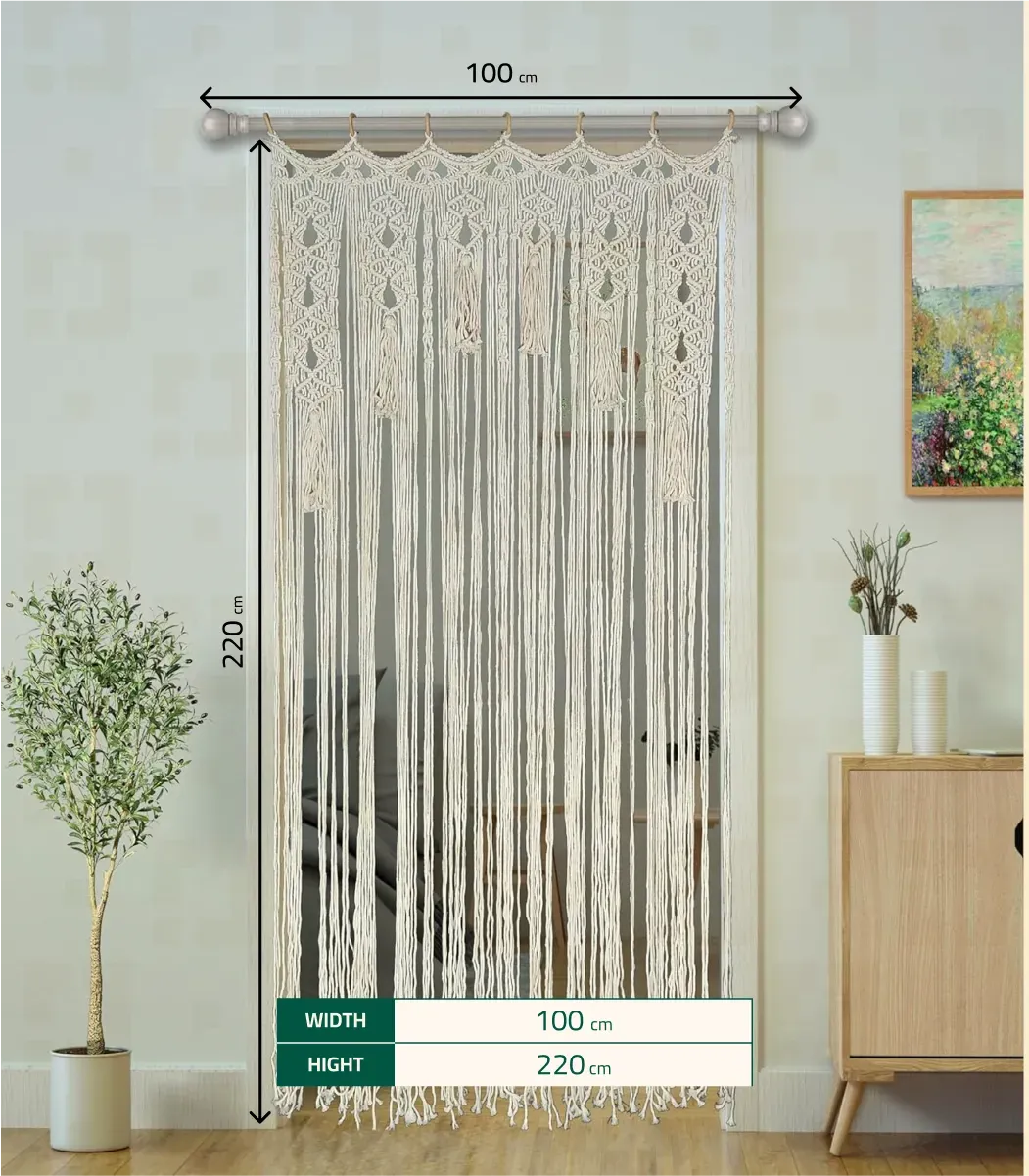 Elevate your interiors with the Macrame Curtain in Bohemian style. Handcrafted from Fiber, finished in Off white, size 220*100 Cm, by SHababik. A timeless piece to add warmth and charm to your home.