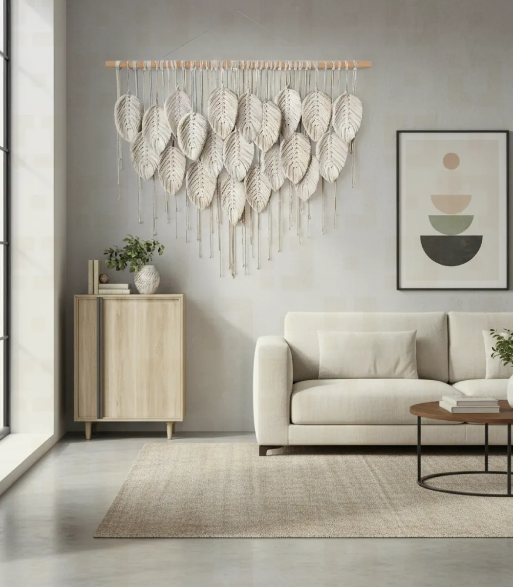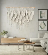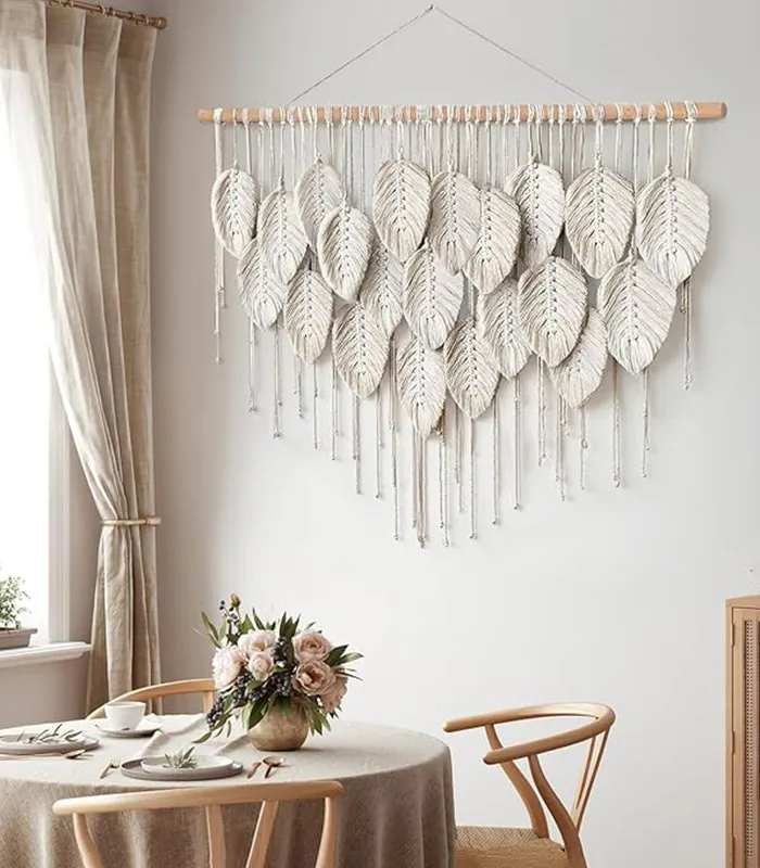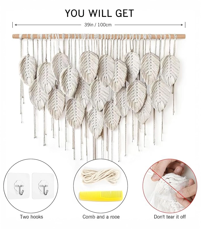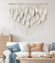 Antikiano captures timeless charm and modern boho spirit in the Macrame Feathers. Handwoven from Fiber, Wood in white, it reflects soulful craftsmanship and a love for detail. Bring it home to experience the soul of true craftsmanship.