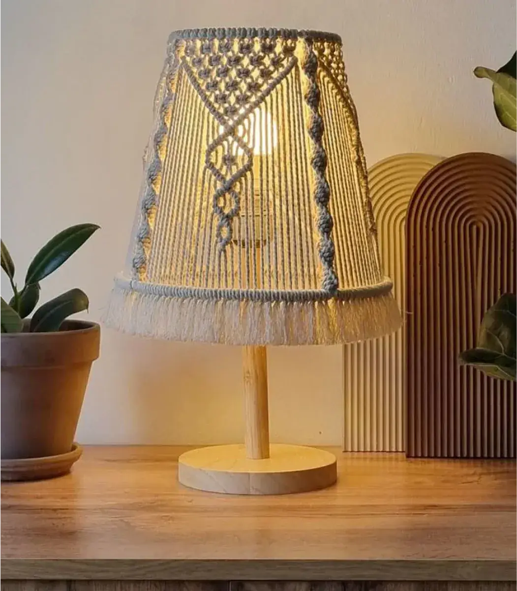 Discover the charm of our Macrame Lampshade by Antikiano brand. Crafted from high-quality Fiber, Wood, this Rustic, Modern, Bohemian, Minimalist style piece in elegant Beige adds a natural, cozy touch to your space. size 40×80 Cm.