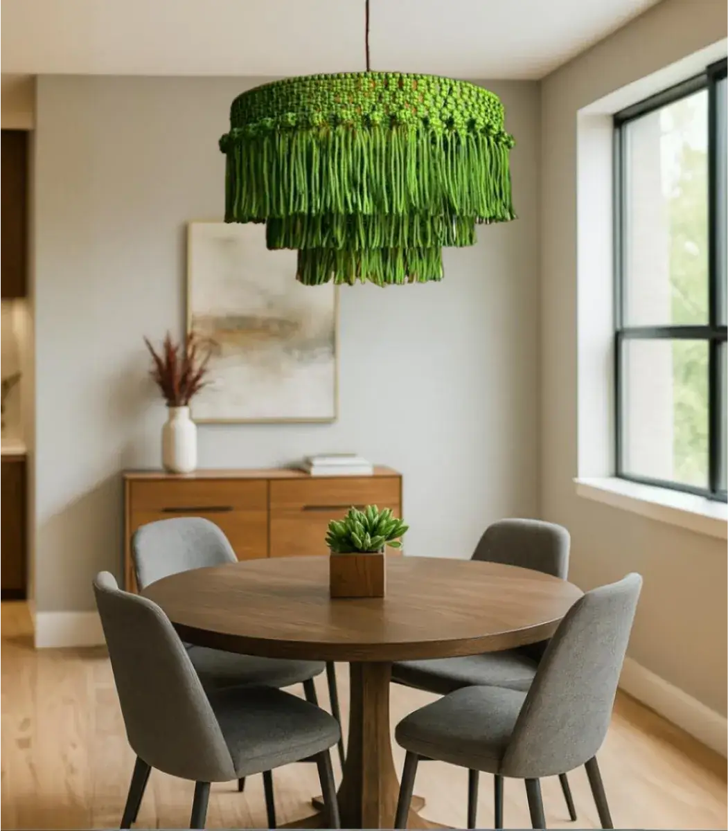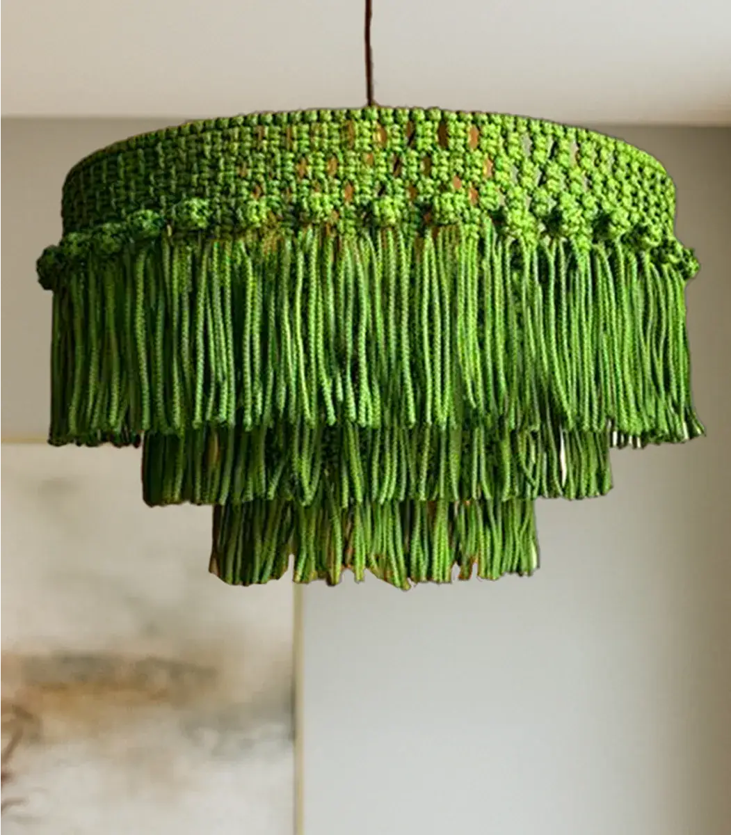Discover the charm of our Macrame Lantern by HMK brand. Crafted from high-quality Fiber, Metal, this Rustic, Modern, Bohemian style piece in elegant Green adds a natural, cozy touch to your space. size 50×60 Cm.