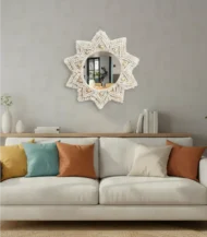 Handcrafted Macrame Mirror by Khoyot Brand, made with Fiber, glass in a unique Bohemian design. This stylish White wall mirror adds a natural, cozy touch to your bedroom or living room. Perfect for spaces sized 30×45 Cm.