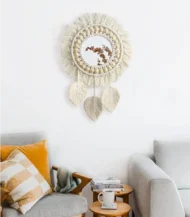 Handcrafted Macrame Mirror by Khoyot Brand, made with Fiber, glass in a unique Modern design. This stylish White wall mirror adds a natural, cozy touch to your bedroom or living room. Perfect for spaces sized 35×75 Cm.