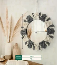 Handcrafted Macrame Mirror by Khoyot Brand, made with Fiber, glass in a unique Modern design. This stylish Multicolor wall mirror adds a natural, cozy touch to your bedroom or living room. Perfect for spaces sized 35×45 Cm.