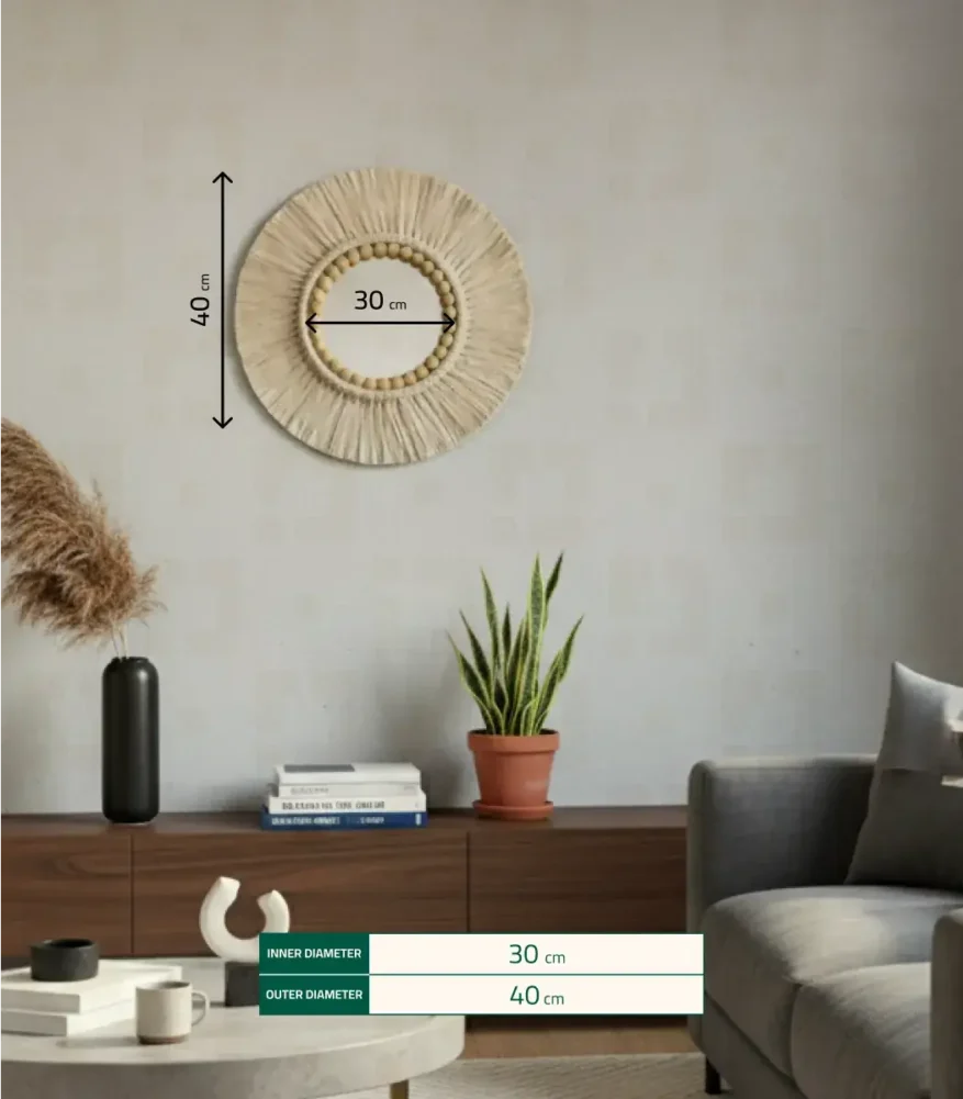 Handcrafted Macrame Mirror by Khoyot Brand, made with Fiber, glass in a unique Minimalist design. This stylish White wall mirror adds a natural, cozy touch to your bedroom or living room. Perfect for spaces sized 30×40 Cm.