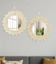 Handcrafted Macrame Mirror by Khoyot Brand, made with Fiber, glass in a unique Bohemian design. This stylish Off White wall mirror adds a natural, cozy touch to your bedroom or living room. Perfect for spaces sized 50×40 Cm.