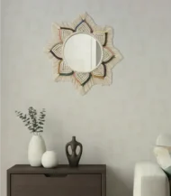 Handcrafted Macrame Mirror by Khoyot Brand, made with Fiber, glass in a unique Modern design. This stylish Multicolor wall mirror adds a natural, cozy touch to your bedroom or living room. Perfect for spaces sized 50×40 Cm.