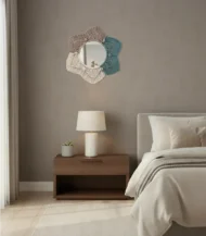 Handcrafted Macrame Mirror by Khoyot Brand, made with Fiber, glass in a unique Modern design. This stylish Multicolor wall mirror adds a natural, cozy touch to your bedroom or living room. Perfect for spaces sized 25×40 Cm.