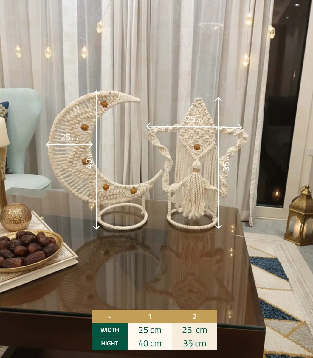 WOOD & ROPE presents the Macrame Moon and Star 2 Pcs as a refined statement of contemporary luxury. The combination of high‑quality Fiber and Metal and refined Multicolor hues creates a calm, luxurious presence. A statement piece designed to enrich spaces with subtle luxury.