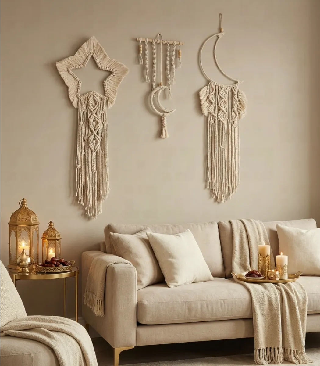 Sugar crafts reveals the Macrame Moon and Star 3 Pcs, blending refined design with the calm essence of Ramadan. With its refined Fiber, Wood texture and soft Off white palette, it enhances the peaceful mood of the season. Designed to enhance Ramadan décor with quiet luxury and grace.