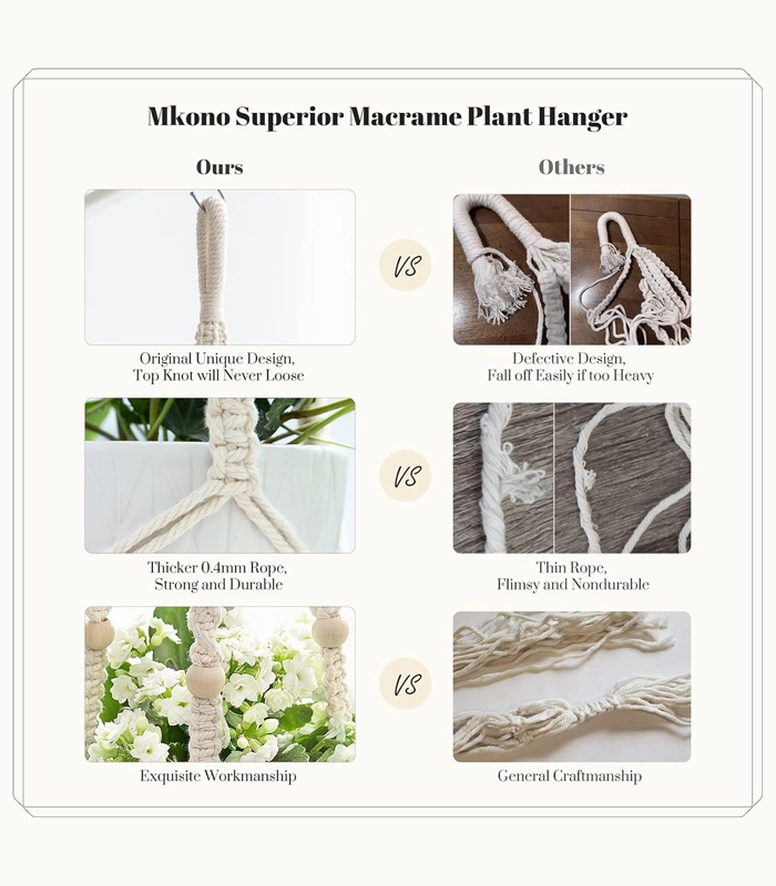 Antikiano brings texture, emotion, and elegance together in the Macrame Plant Hangers. Expertly made from Fiber, it highlights the perfect balance between simplicity and sophistication. Bring it home to experience the soul of true craftsmanship.