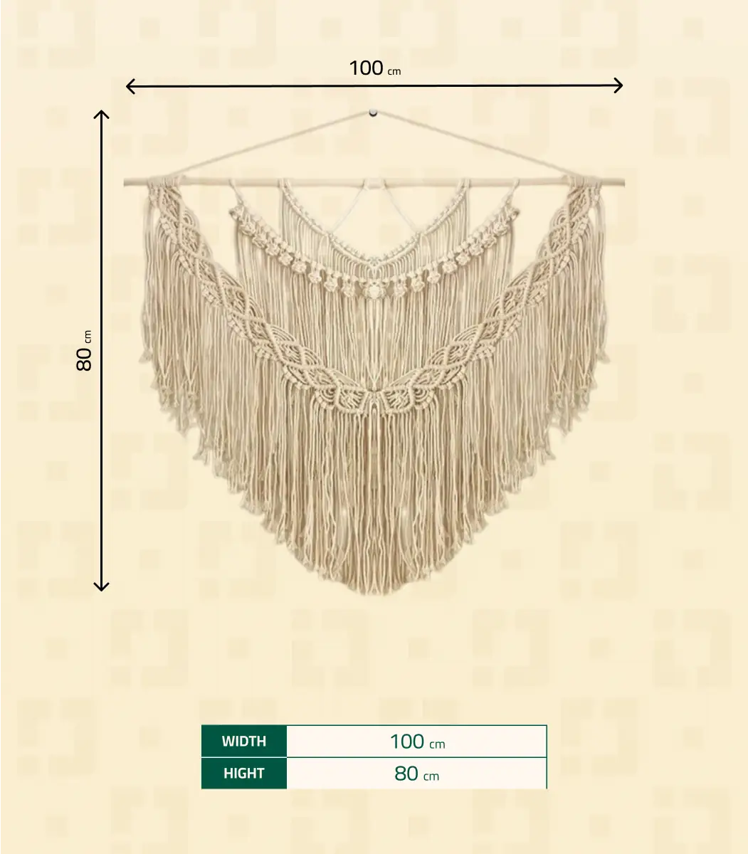Sometimes, all a room needs is that one piece to feel complete. This handcrafted Macrame wall hanging from Antikiano brand does just that. Designed with care using Fiber, Wood, its Bohemian, Rustic style and Beige color, create a subtle focal point that pairs effortlessly with uniqe and natural interiors. measuring 100×80 Cm.