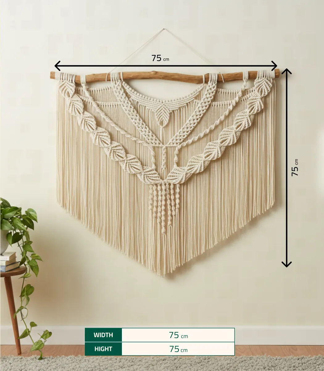 Sometimes, all a room needs is that one piece to feel complete. This handcrafted Macrame wall hanging from Antikiano brand does just that. Designed with care using Fiber, Wood, its Bohemian, Rustic style and Beige color, create a subtle focal point that pairs effortlessly with uniqe and natural interiors. measuring 75×75 Cm.