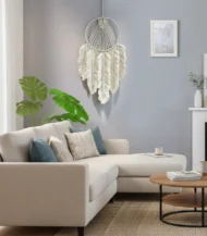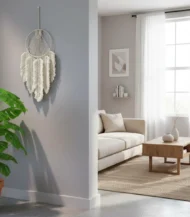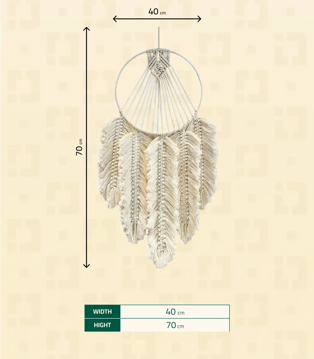 Sometimes, all a room needs is that one piece to feel complete. This handcrafted Macrame wall hanging from Antikiano brand does just that. Designed with care using Fiber, Wood, its Bohemian, Rustic style and White color, create a subtle focal point that pairs effortlessly with uniqe and natural interiors. measuring 40×70 Cm.