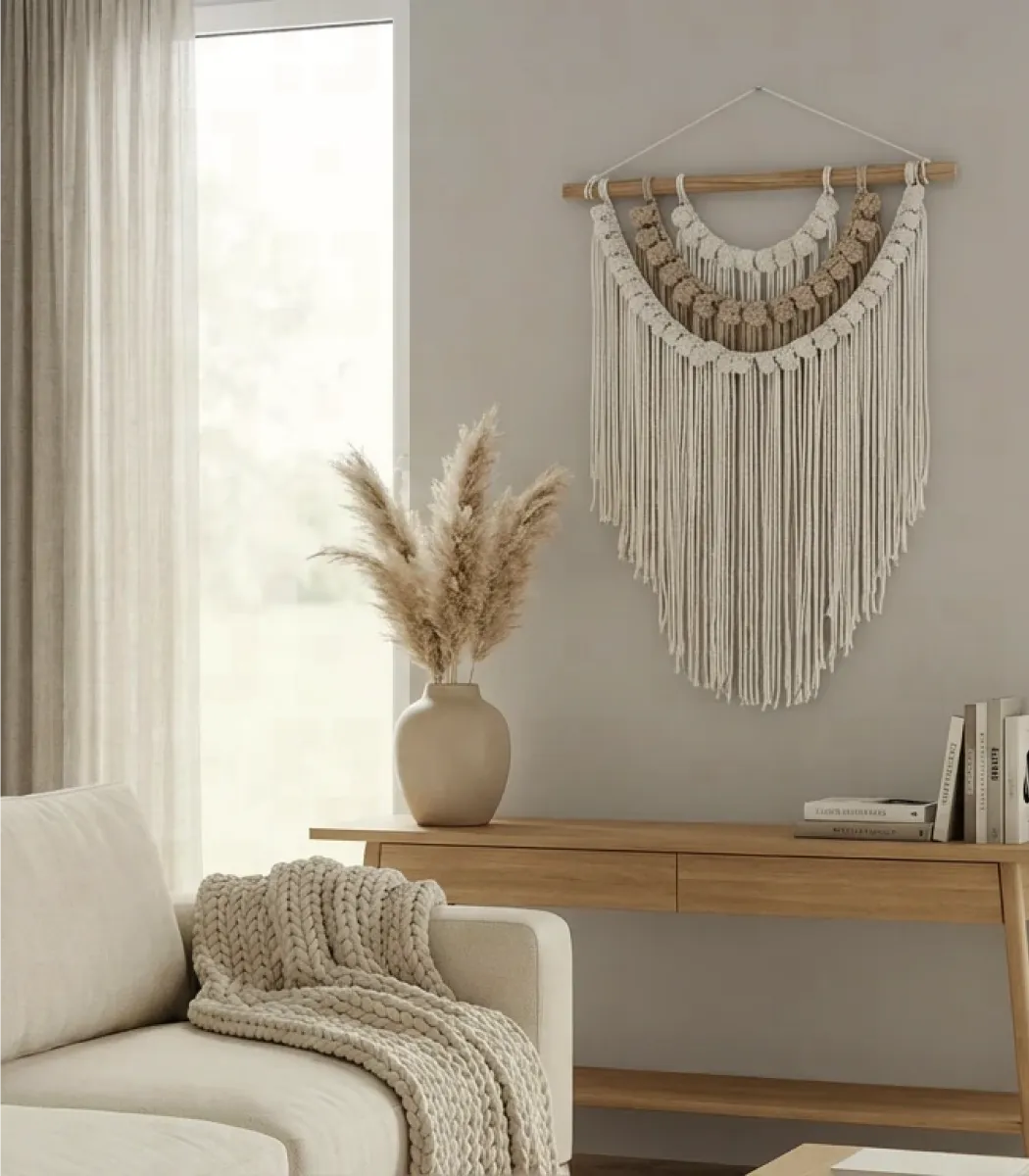 W&R elevates everyday essentials with the Macrame Wall Hanging, created to complement sophisticated taste. Its refined Fiber, Wood texture and soft Multicolor finish create a minimal, elegant appearance. A refined accessory that enhances your lifestyle with modern charm.