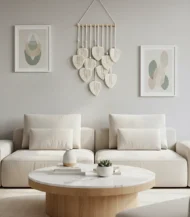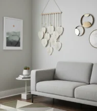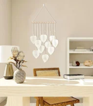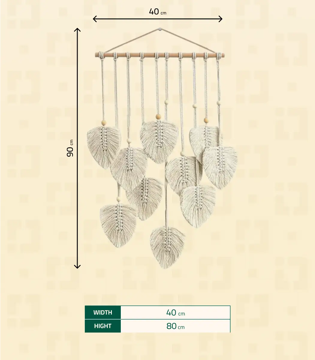 Sometimes, all a room needs is that one piece to feel complete. This handcrafted Macrame wall hanging Leaves from Antikiano brand does just that. Designed with care using Fiber, Wood, its Bohemian, Rustic style and white color, create a subtle focal point that pairs effortlessly with uniqe and natural interiors. measuring 40×90 Cm.