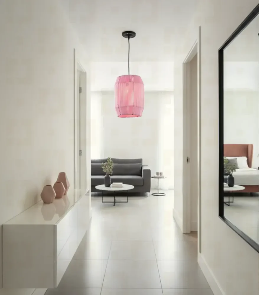 Style your room with the Makrami Ceiling Lamp from TBS, where craftsmanship meets modern design. Made from Fiber, Metal with a Modern touch and finished in Pink. Perfect for adding warmth, character, and timeless elegance to any room.