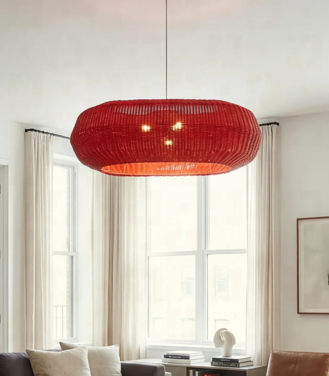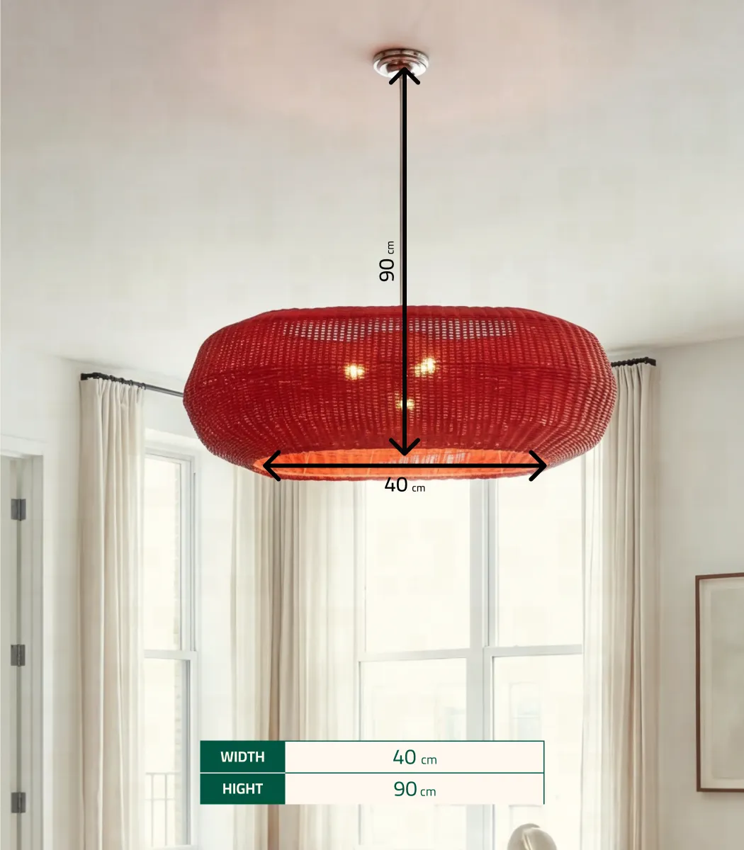 A stylish ceiling pendant light made from natural Bambo , featuring a simple geometric design that brings warmth and character to any room. The open-weave structure allows light to diffuse softly, creating a cozy and inviting atmosphere — perfect for living rooms, bedrooms, or boho-inspired cafés.