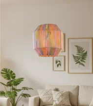 Add artistic charm to your interiors with the handcrafted Makrami Ceiling Lamp by TBS. Made from Fiber, Metal with a Modern touch and finished in Multicolor. Perfect for adding warmth, character, and timeless elegance to any room.