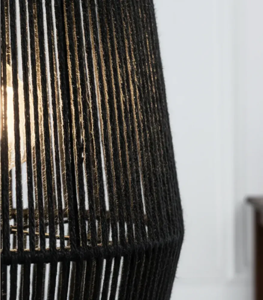 Bring a cozy, stylish glow into your space with the Makrami Floor Lamp by TBS. Made from Fiber, Metal with a Modern touch and finished in Black. Perfect for adding warmth, character, and timeless elegance to any room.