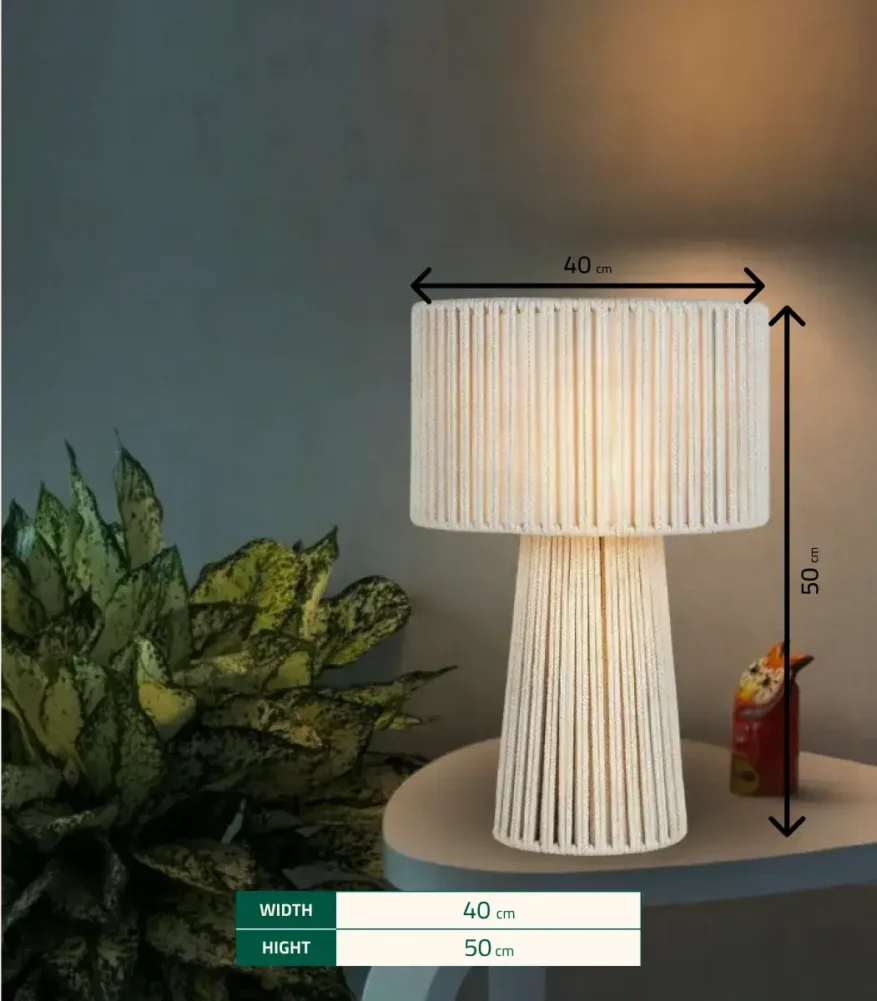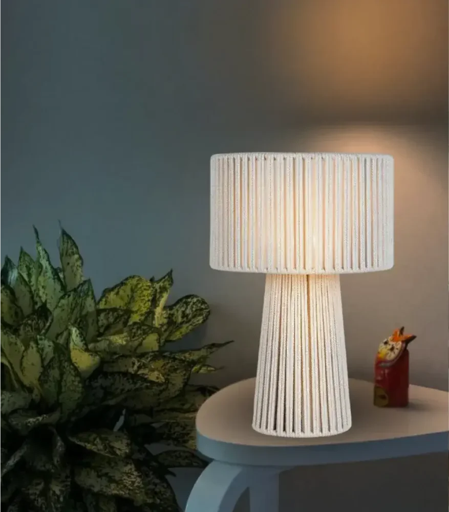 Add artistic charm to your interiors with the handcrafted Makrami table lamp by TBS. Made from Fiber, Metal with a Modern touch and finished in Off white. Perfect for adding warmth, character, and timeless elegance to any room.
