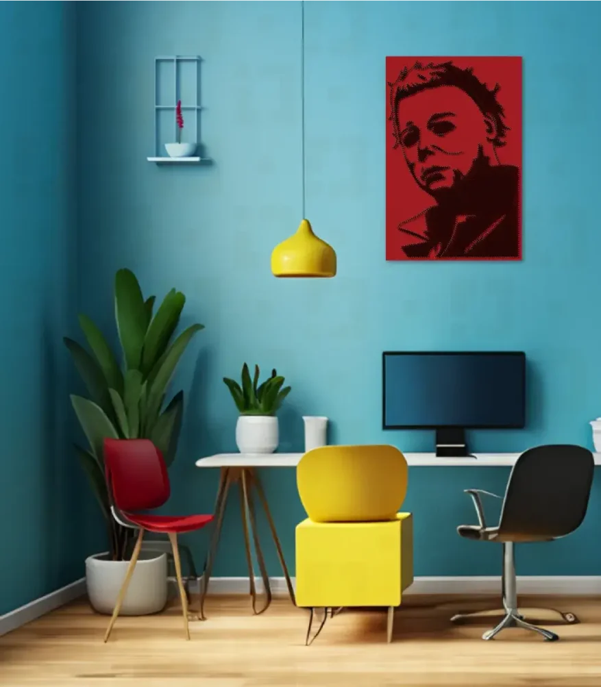 String art movie characters horror, Contemporary art handmade, Michael Myers Inspired string art wall decor using very high quality materials, Available in white, yellow and red.