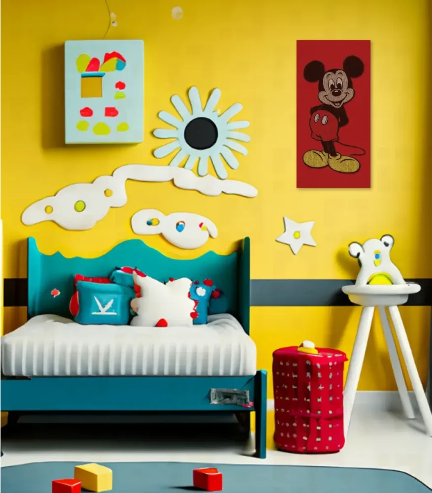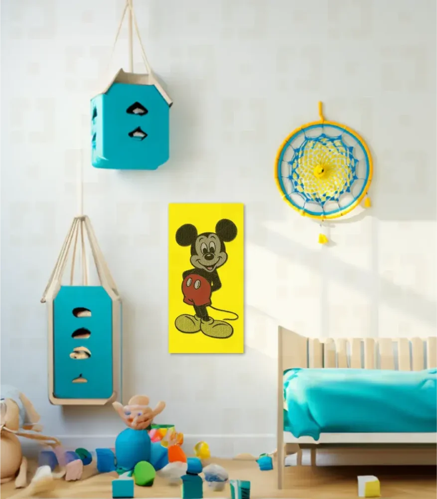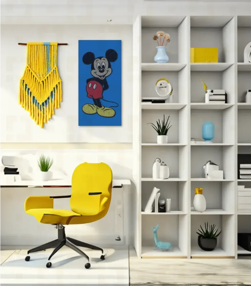 String art cartoon famous character, Mickey mouse collection, Contemporary art handmade, Mickey Mouse Character Inspired string art wall decor created by Disney Television Animation using very high quality materials, Available in blue, red and yellow.